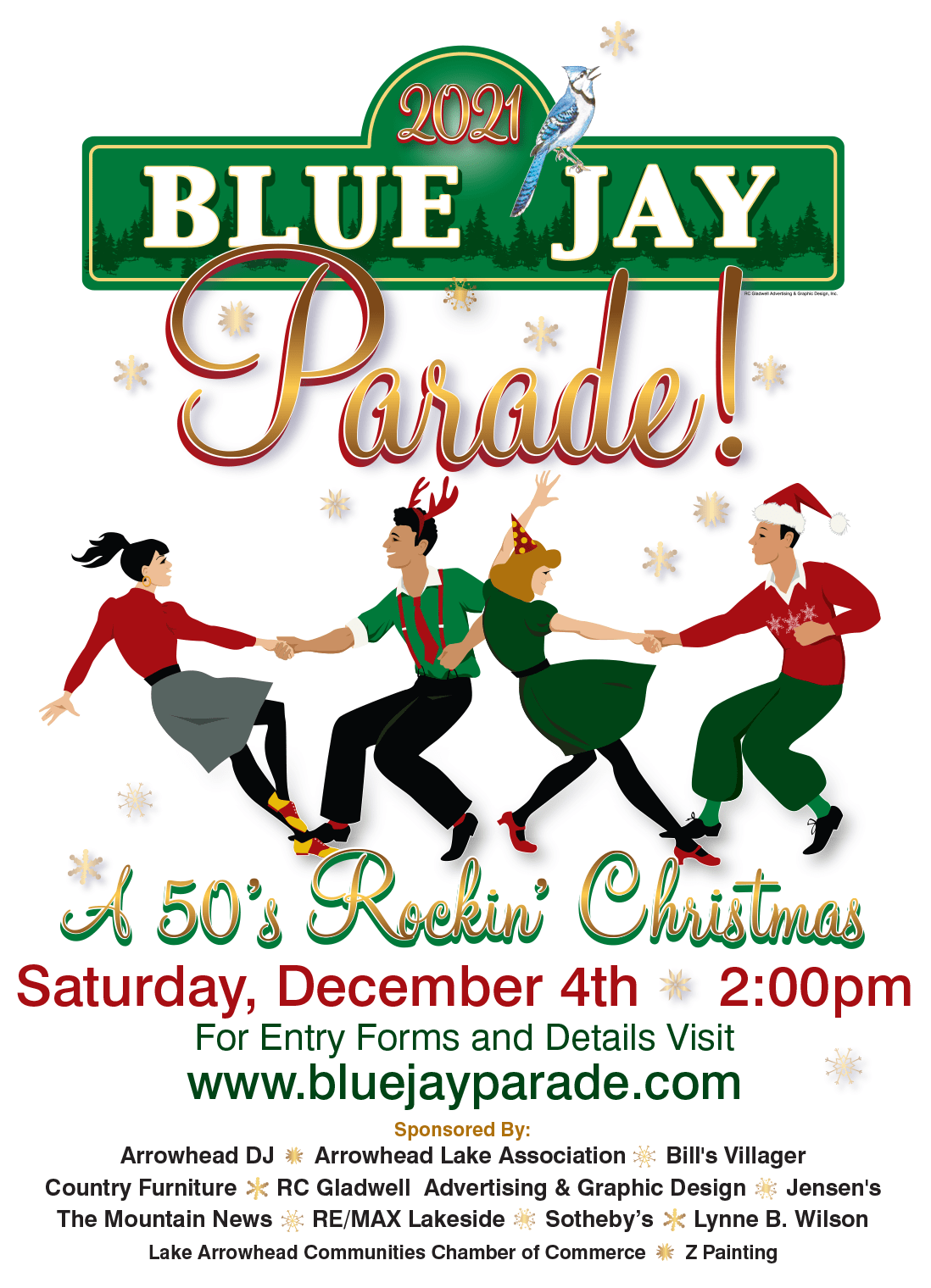Join us for the biggest little parade ever! It's the 2021 Blue Jay Parade in downtown Blue Jay, California on Saturday, December 4th at 2 pm. This year's parade theme is "A 50's Rockin' Christmas". See holiday floats, festive costumes, marching band(s), Santa Claus, classic cars, community groups and the spirit of Christmas throughout the crowds. So, grab some hot chocolate and plan to attend this traditional holiday celebration that the whole family will enjoy!